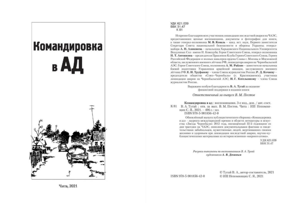 На протяжении 15 лет авторы сборника записывали истории забайкальцев – участников событий. На страницах книги «Командировка в Ад» раскрываются истории и судьбы 154 забайкальцев-борцов с аварией. Книга опубликована в открытом доступе.