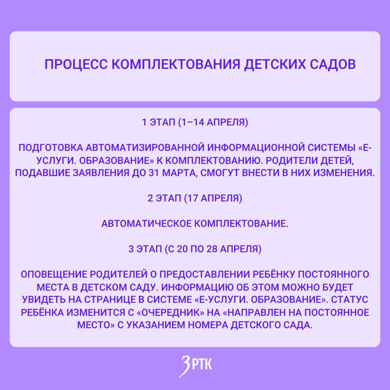 Процесс комплектования детских садов будет состоять из пяти этапов и продлится до 18 июня 2026 года.