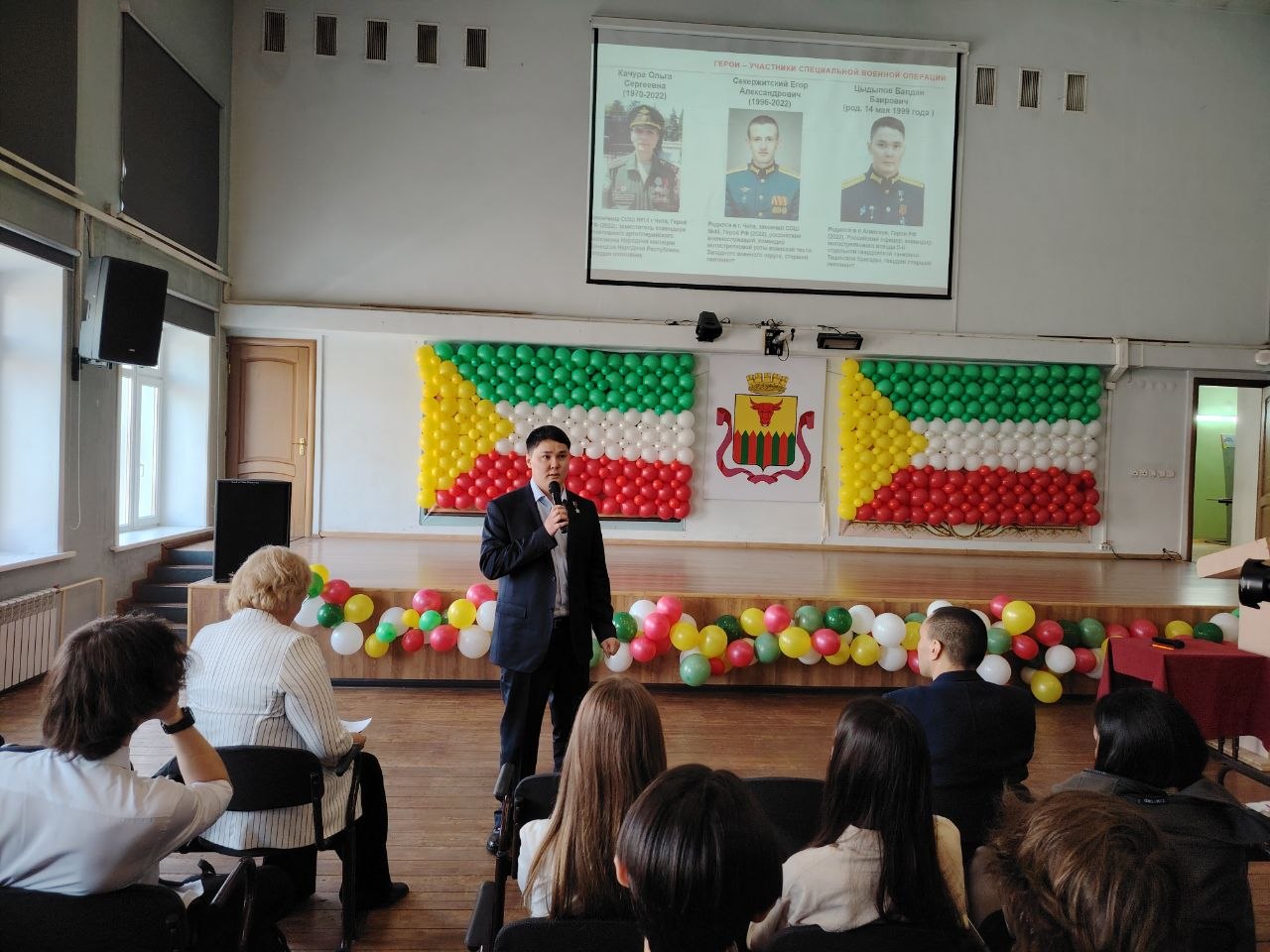 «Ровно 10 лет назад - в 2016 году - я окончил школу, поступил в Новосибирское высшее военное командное училище. Учиться было интересно - мы поднимались на Эльбрус, были водолазные спуски, больше 20 прыжков с парашютом. После училища я отправился служить на Дальний Восток в Уссурийск, а затем ушёл на СВО. Был конец марта 2022 года, когда нашему подразделению поступила задача передислоцироваться батальонной тактической группой - около 500 человек, и по пути следования мы попали в засаду. Я со своим товарищем развернул боевую машину пехоты, отстрелялись, выплнили боевую задачу, за это я был награждён Звездой Героя. Я считаю, что это награда всего нашего подразделения», - рассказал старшеклассникам Балдан Цыдыпов.
