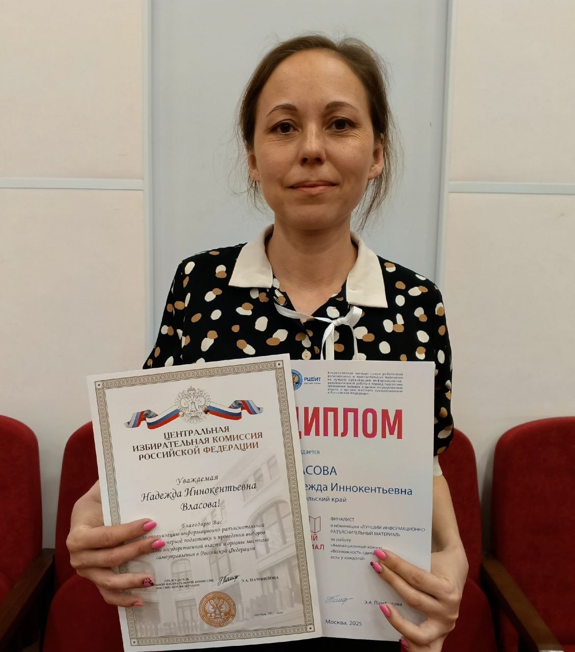 Библиотекарь Кыринской окружной библиотеки им. В.И. Сажина Надежда Иннокентьевна Власова стала финалистом конкурса ЦИК России в номинации «Лучший информационно-разъяснительный материал» среди работников библиотек.