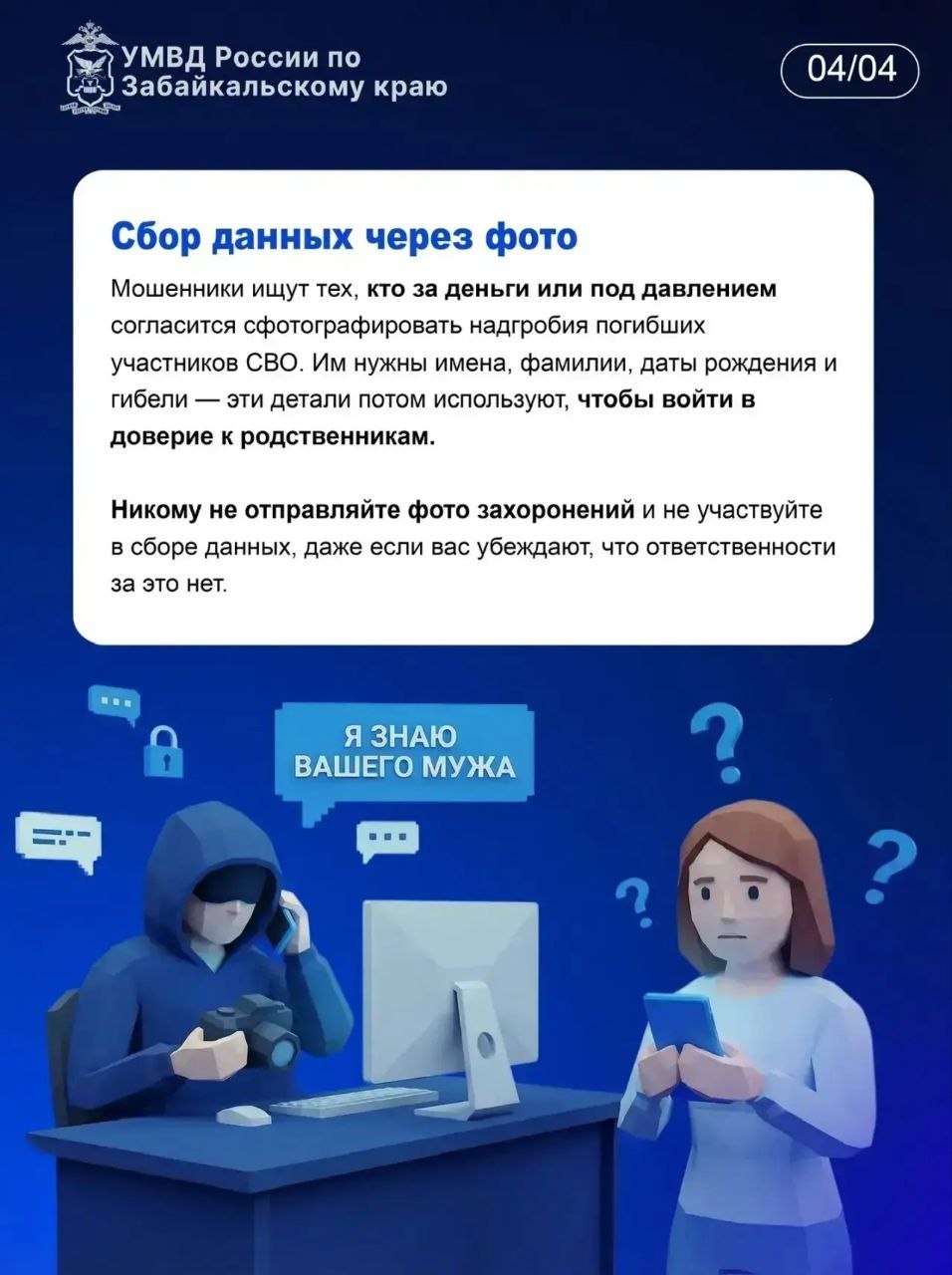 После этого заявителю начали поступать звонки от лже-сотрудников банка, ФСБ, Росреестра и других организаций, которые напугали его взломом банковского счета и переводом денег за границу. От потерпевшего потребовали обналичить счет, на котором хранилось более 7 миллионов рублей. Молодой человек передал все деньги прибывшему к нему курьеру. https://vk.com/press_adm_chita?t2fs=1b851631f8fd8de890_12&w=wall-170591708_3938