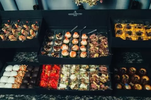 - Гурманские фуршеты: Доставка изысканных закусок в премиальной упаковке. Каждое блюдо готово заполучить внимание присутствующих на столах и вызвать восхищение своим видом.