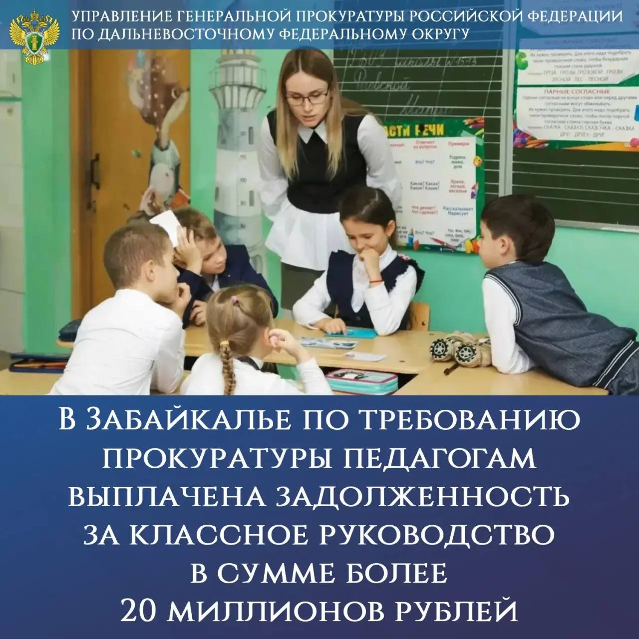 В Забайкалье по требованию прокуратуры педагогам выплачена задолженность за классное руководство в сумме более 20 миллионов рублей