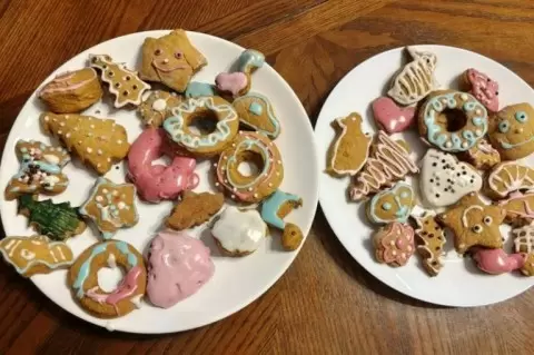 Для сохранения мягкости и влажности, сразу после выпекания печенья следует закрыть пленкой или поместить в контейнер. После полного остывания каждое печенье можно украсить сахарной глазурью или красочными пищевыми фломастерами — и вот, праздник для близких готов!