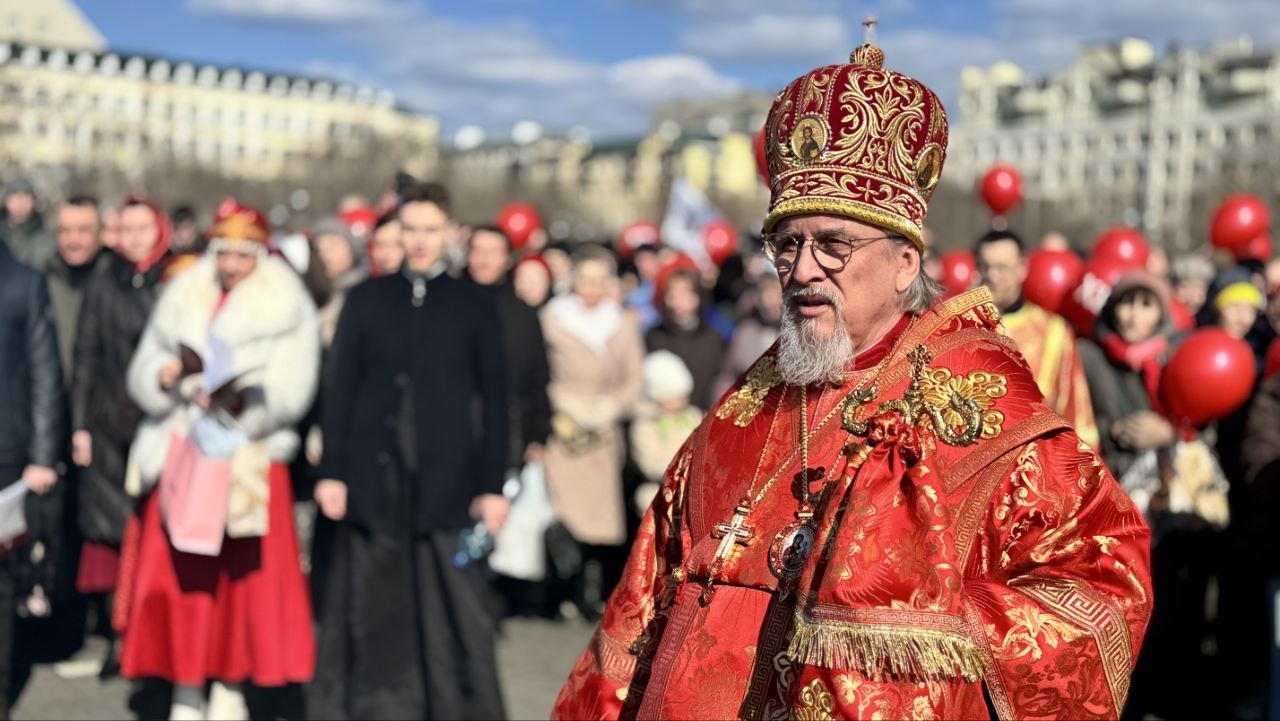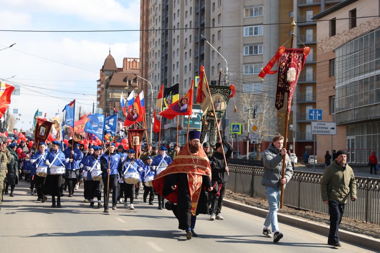 Во время движения в колонну влились прихожане храма во имя Святителя Луки, архиепископа Крымского и Симферопольского, а также Спасо-Преображенского храма.