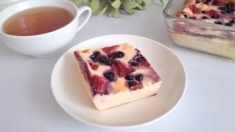 В этом блюде отсутствуют мука и манка — только творог, яйца и крахмал. Именно крахмал придаёт запеканке ту самую удивительную текстуру, которая тает во рту. А для разнообразия добавляется лёгкая цитрусовая нотка—цедра апельсина, в сочетании с ягодами придаёт блюду уникальный вкус.