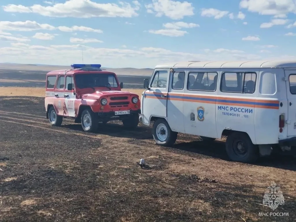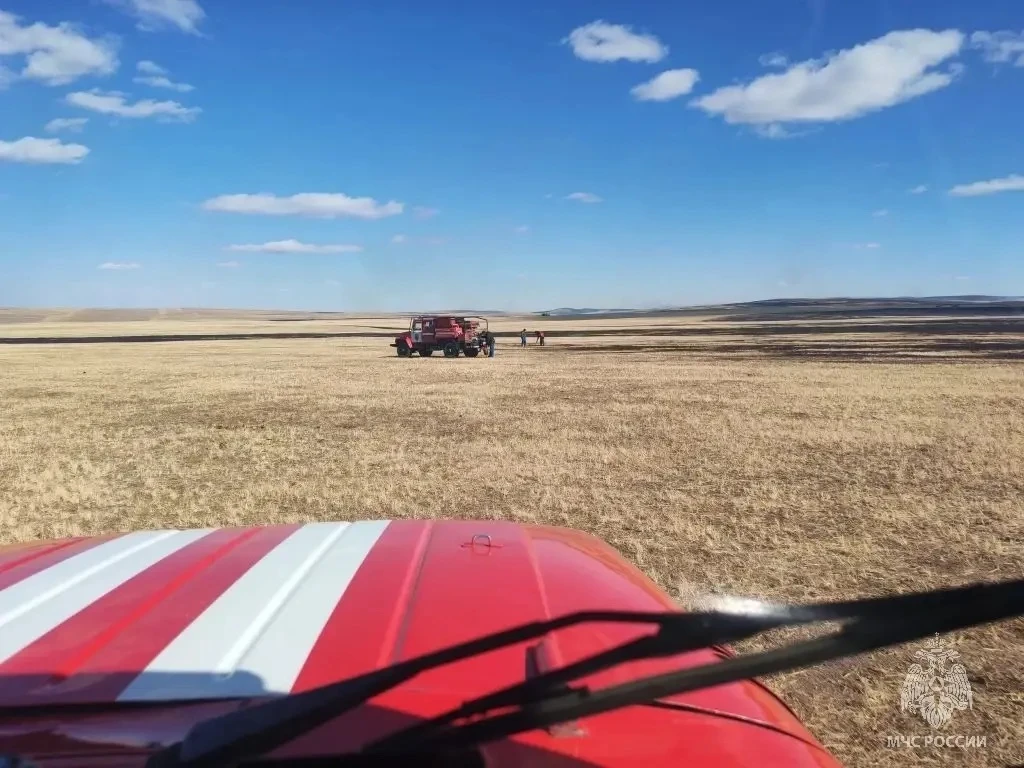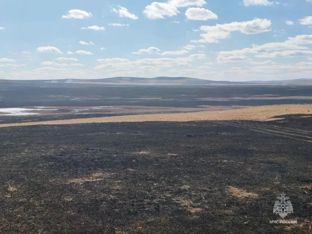 700 гектаров травы горят в 19 километрах от Нового Дурулгуя. Огонь пришел с территории Монголии.