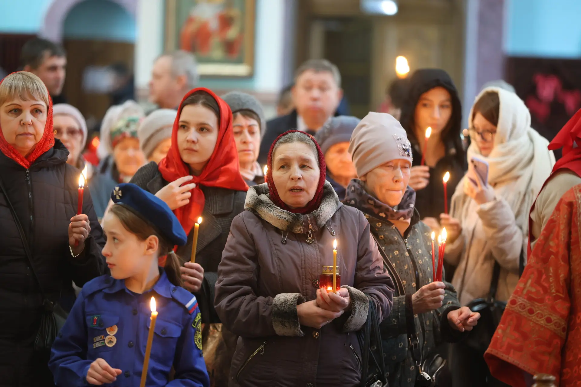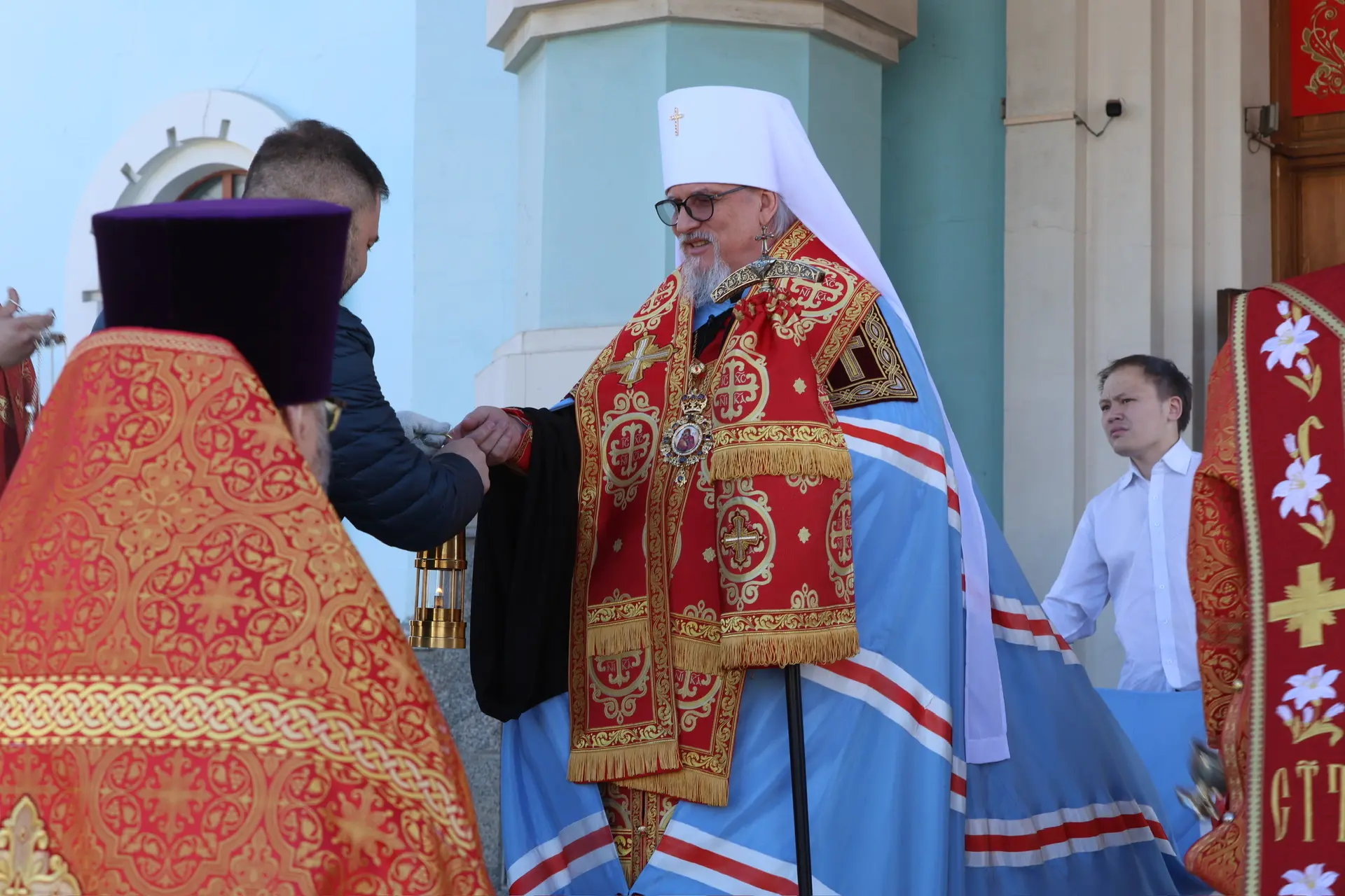 В кафедральном соборе Казанской иконы Божией Матери прошла его встреча. Каждый, из собравшихся в храме, смог зажечь свои свечи и лампады.