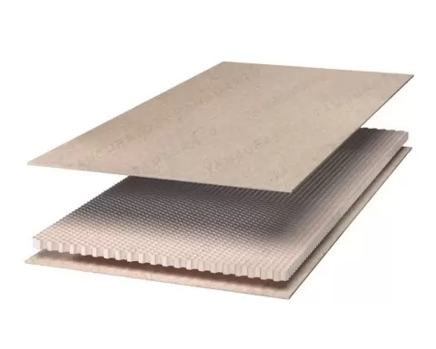 Тамбурат — это многослойная плитная структура, состоящая из внешних опорных слоев, обычно изготовленных из древесно-стружечных и мелкодисперсных плит (МДФ, ЛДСП и ХДФ), и внутреннего сотового наполнителя из картона. Этот материал был разработан итальянской мебельной индустрией более 30 лет назад как доступный и легкий альтернативный вариант массиву дерева, не уступая ему по эксплуатации.