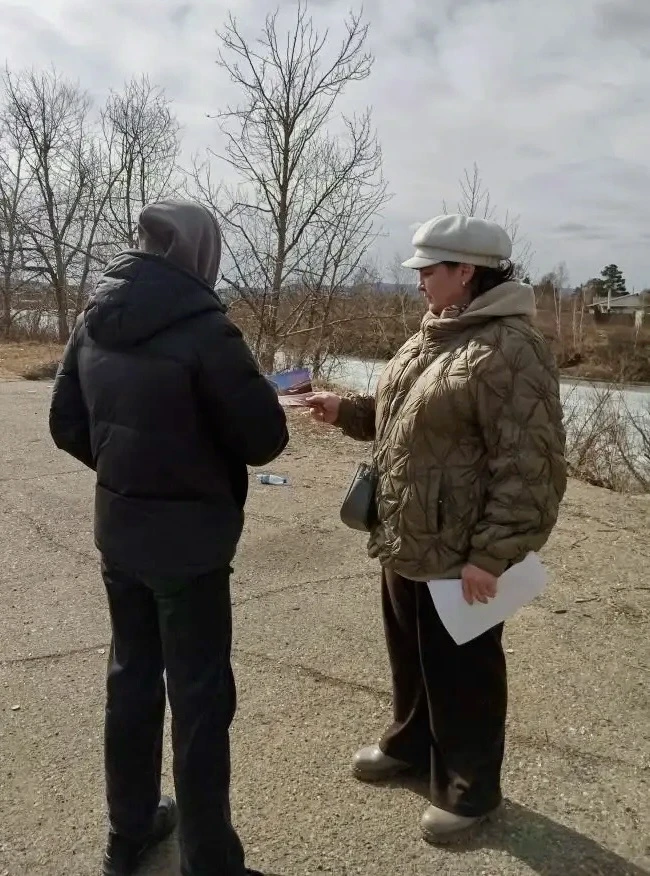 В Центральном районе города Читы прошел профилактический рейд, направленный на предотвращение несчастных случаев на водных объектах в весенний период. Профилактические беседы с несовершеннолетними и их законными представителями провели специалисты КДН и ЗП Центрального района, центра "Милосердие" и специалисты управления по делам ГО и ЧС краевого центра. Они рассказали, чем опасен лед на водоемах в это время, и раздали памятки.