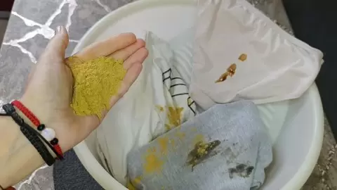 - Демонстрация силы: Горчица прекрасно справляется с трудновыводимыми пятнами, такими как трава, кровь или жир.