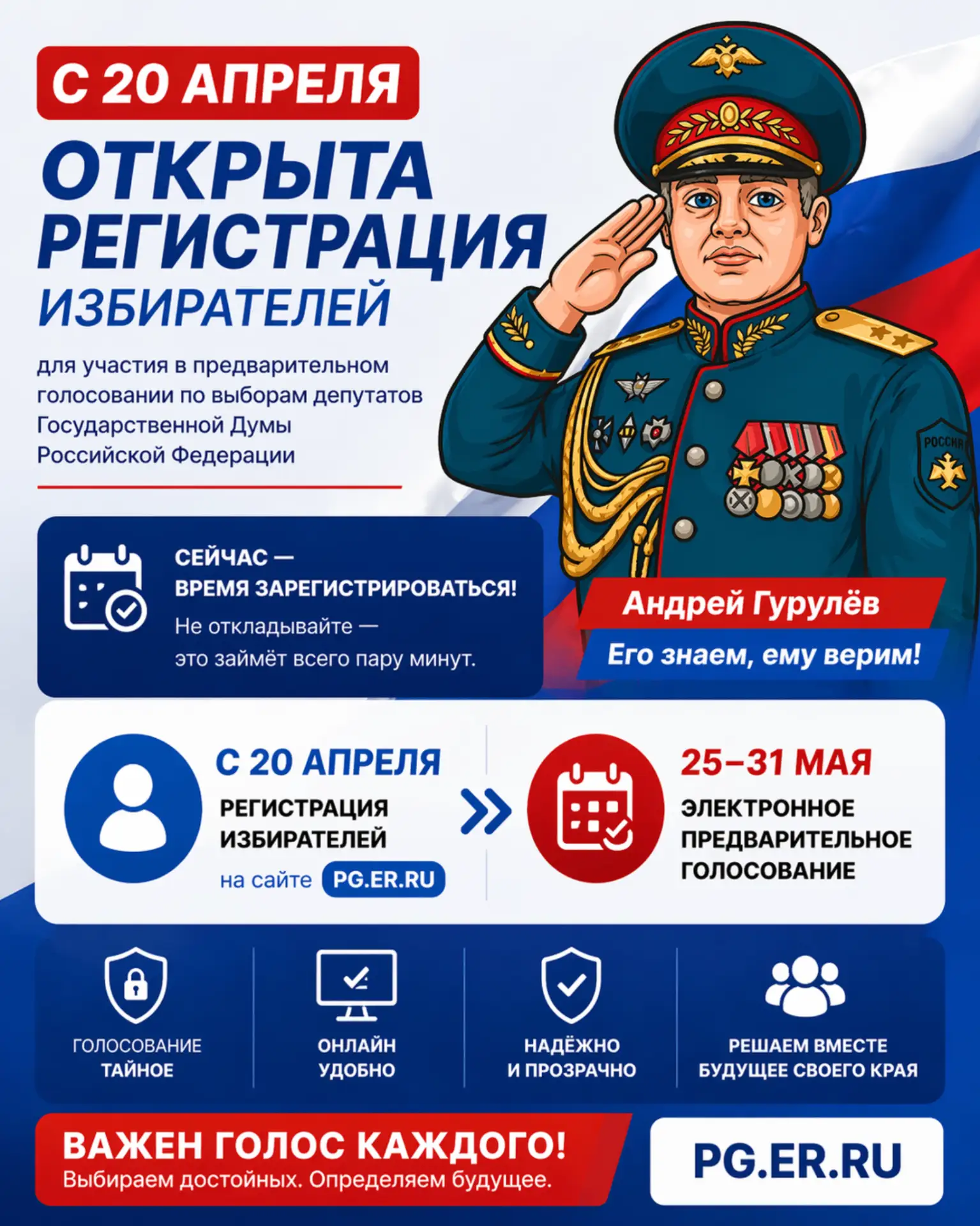 Сегодня стартовала регистрация избирателей для участия в предварительном голосовании "Единой России". Это тот этап, где многое действительно зависит от вашей активности и позиции. Я участвую и рассчитываю на вашу поддержку и обратную связь.