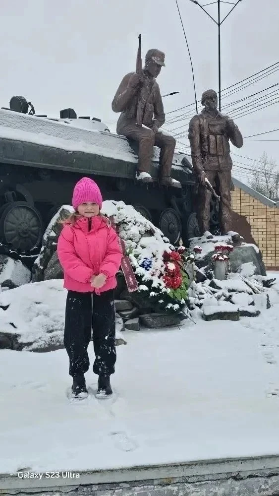 «Сегодня мы подошли к памятнику, который расположен на пересечении дорог на КСК. Этот памятник посвящён воинам-интернационалистам, погибшим в Афганистане. Я рассказала Лизе, как наш сотрудник Москвин Борис Алексеевич принимал активное участие в установлении!» - рассказала мама Лизы Коверга.