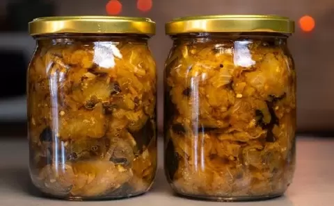 Готовые баклажаны раскладываются по стерилизованным банкам, заливаются остатками горячего масла и плотно закрываются крышками. Закуску можно хранить в прохладном темном месте. Это идеальный гарнир к мясным блюдам или просто к хлебу, который украсит любой стол в зимнюю пору.