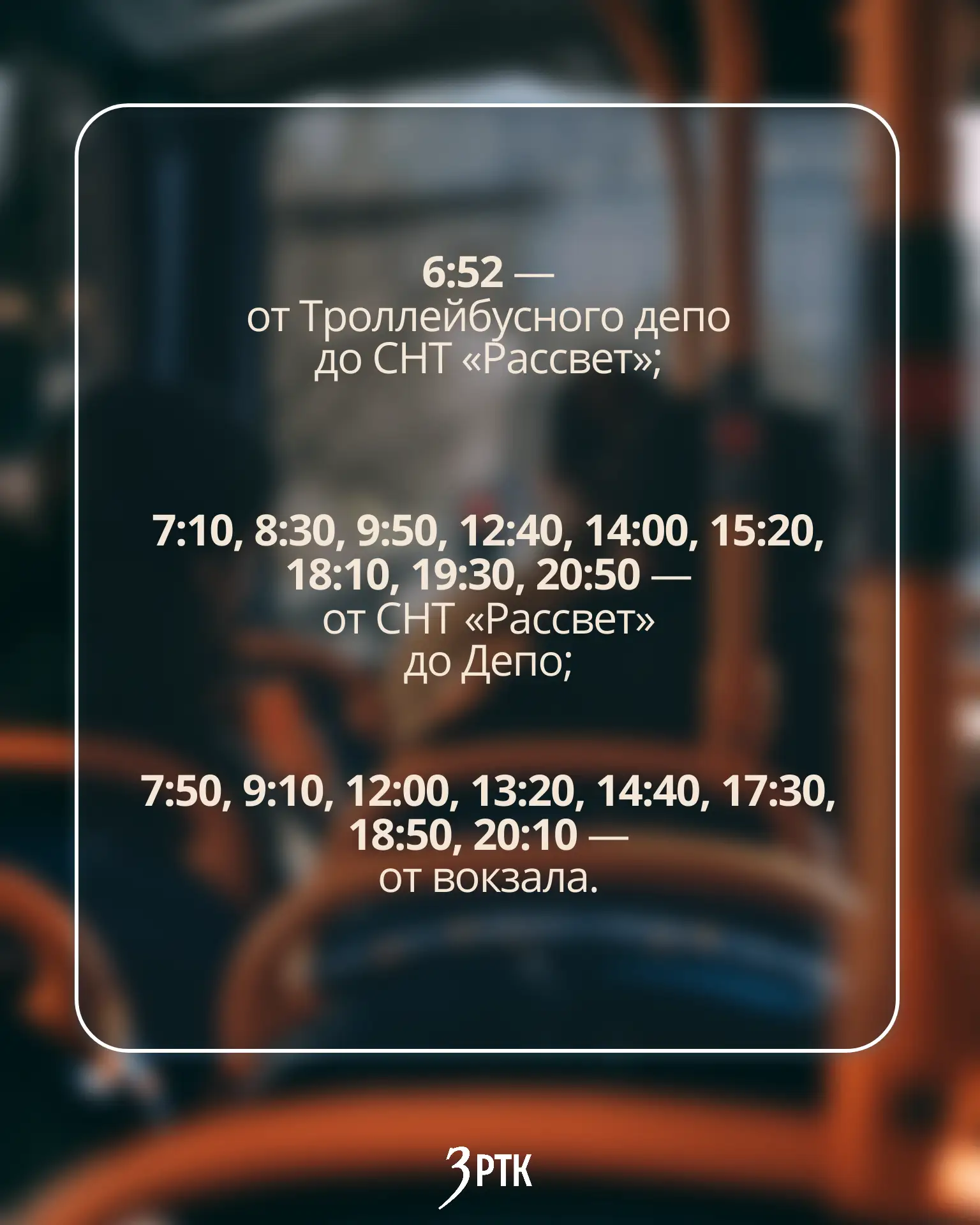 Он начнет курсировать с 29 апреляпо маршруту Вокзал – улица Бутина – улица Новобульварная – улица Красной Звезды – Объездное шоссе – СНТ «Рассвет». Стоимость проезда составит 42 рубля.