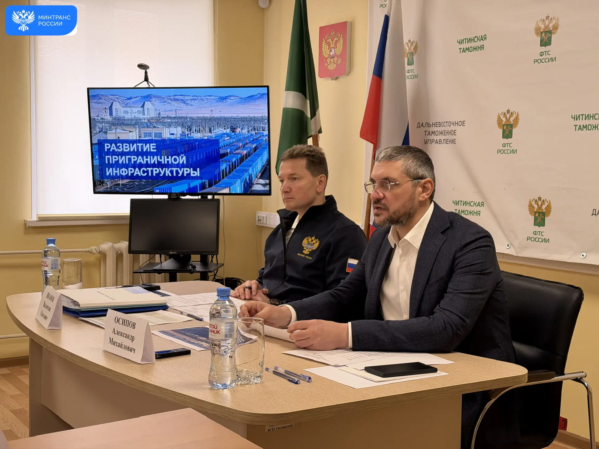 На совещании с губернатором Александром Осиповым обсудили совместные планы по развитию пунктов пропуска и подъездной инфраструктуры. Автомобильные погранпереходы Олочи, Соловьевск, Верхний Ульхун, Забайкальск и Староцурухайтуйский входят в перечень объектов, где к 2030 году планируется сократить время досмотровых мероприятий до 10 минут.