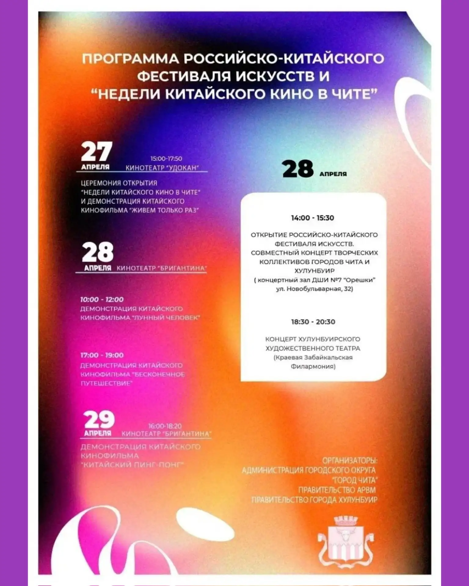 Организаторы: администрация Читы, правительство Хулунбуира и правительство Автономного района Внутренняя Монголия (КНР).