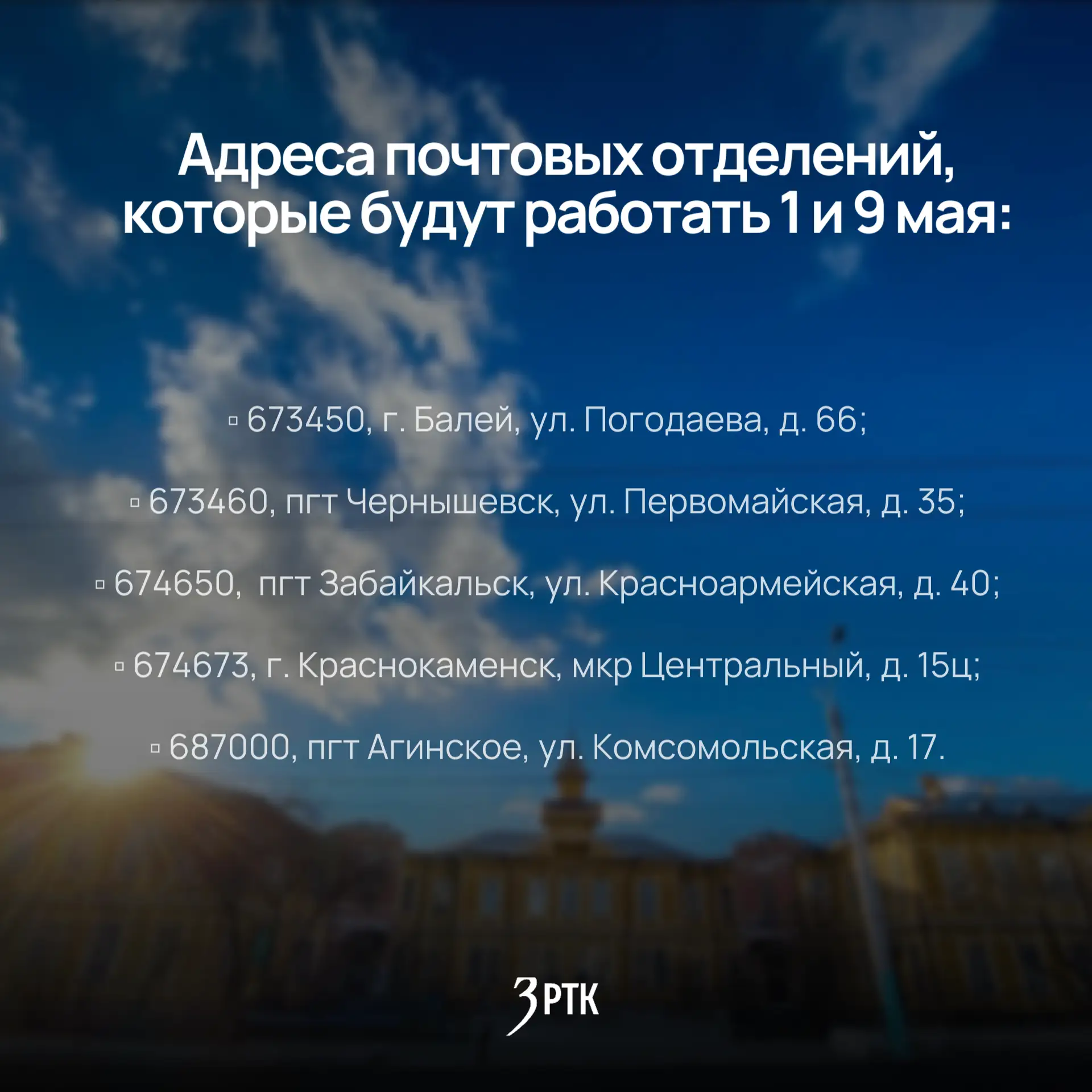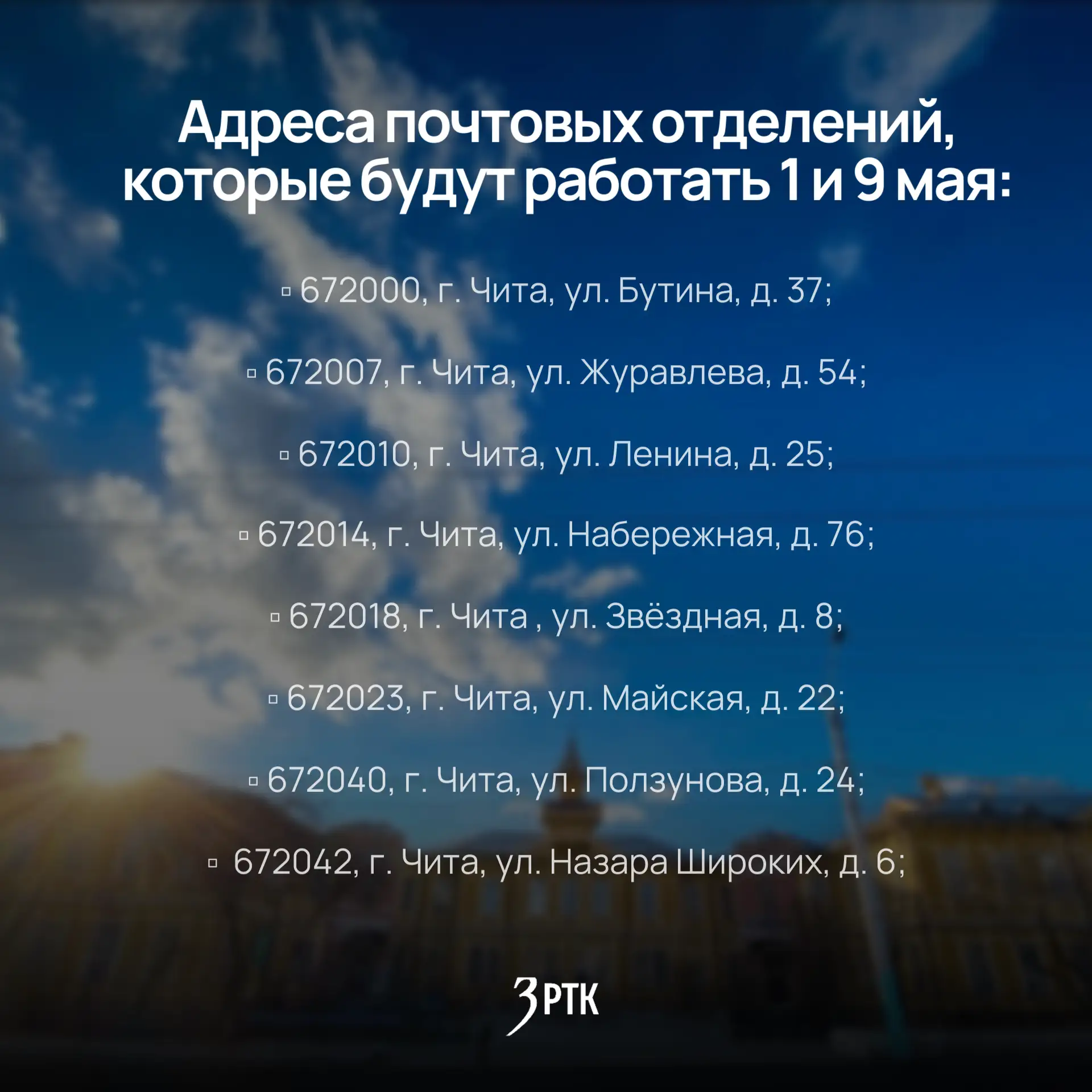 Как будут работать почтовые отделения Читы на майских праздниках?