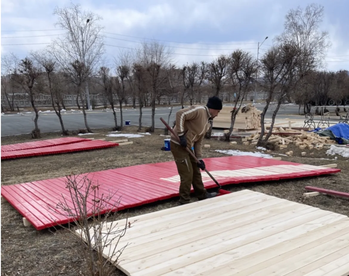 Продолжаются работы по благоустройство мемориала «Боевая и трудовая слава забайкальцев» и ремонт памятника борцам за советскую власть в Забайкалье на площади Революции. Работы проходят в рамках муниципальной программы «Развитие культуры городского округа «Развитие культуры городского округа «Город Чита» на 2017-2031 годы». Их выполняет подрядная организация ООО «Контакт». Срок окончания работ составляет, соответственно, 6 и 25 мая.