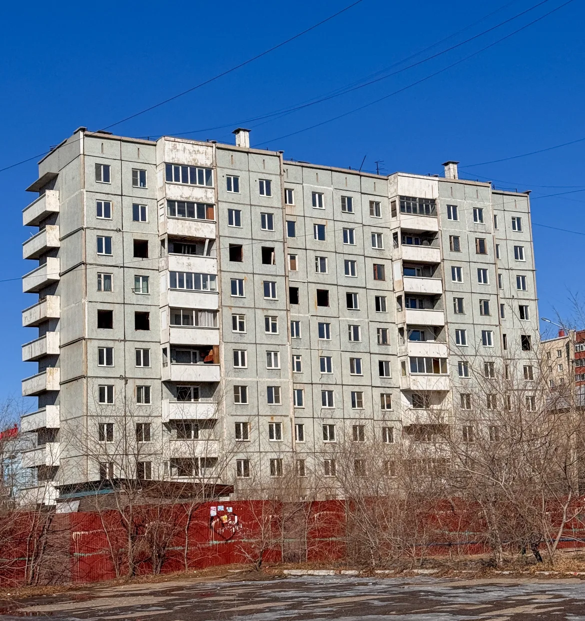 Начались подготовительные работы по демонтажу расселенного аварийного десятиэтажного дома №39 в мкр.Северный. Работы выполняет подрядная организация ООО «Стройинвест» из Южно-Сахалинска.