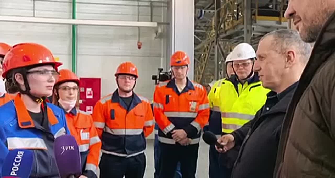 Всего на предприятии работает 1600 человек. Полпред Президента в ДФО Юрий Трутнев пообщался с молодыми специалистами и спросил, нравится ли им тут работать, на что получил положительный ответ.