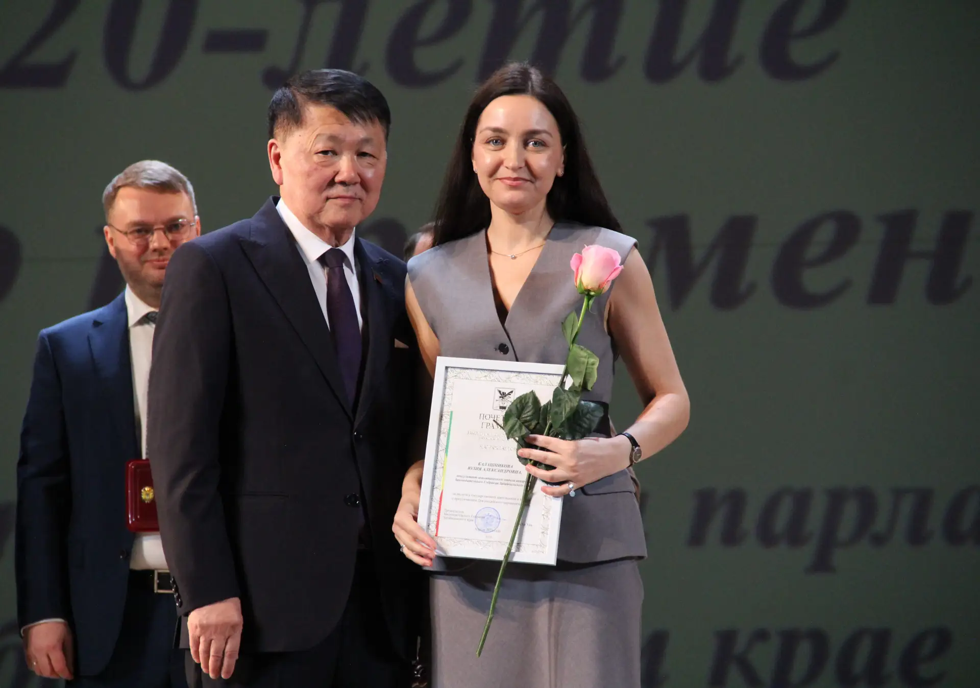 Одной из высших наград - знака отличия регионального парламента «За вклад в развитие Забайкальского края» - удостоены три депутата действующего созыва: Михаил Калашников, Иван Нагель и Нурлан Ахмедов. Награда вручена за заслуги в государственном строительстве и большой личный вклад в социально-экономическое развитие Забайкалья. Обладателем такой же награды стала начальник финансово-экономического отдела Валентина Федосеева.