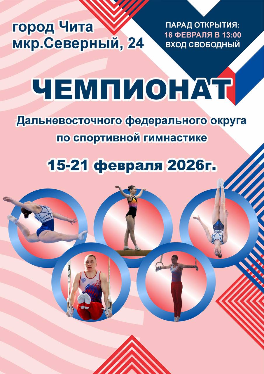 С 15 по 21 февраля в Чите пройдет Чемпионат и Первенство Дальневосточного федерального округа по спортивной гимнастике. На соревнованиях свое мастерство покажут гимнасты и гимнастки от первого взрослого разряда до мастеров спорта, как в командном, так и личном первенстве. Всего в соревнованиях примут участие более ста участников из Забайкальского, Хабаровского, Приморского краёв, Республики Саха (Якутия), Амурской и Сахалинской областях, Республики Бурятия.