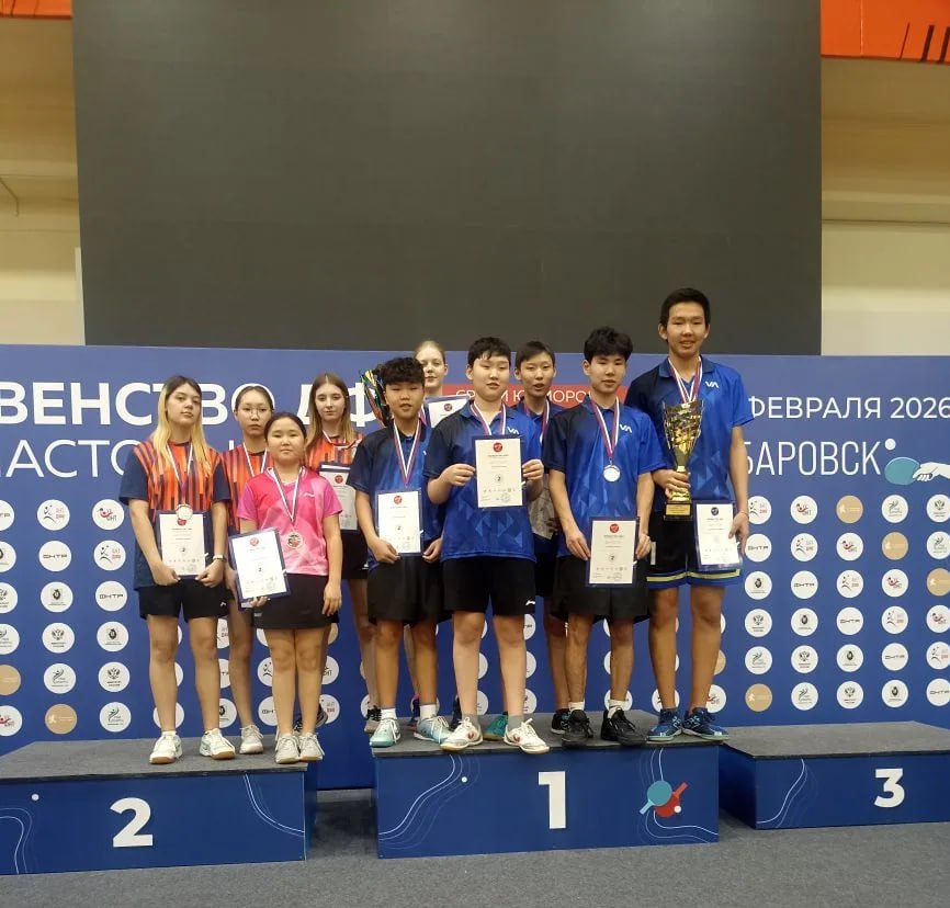 Первенство Дальневосточного федерального округа по настольному теннису среди юниоров и юниорок до 20 лет прошло в Хабаровске с 3 по 9 февраля. Команда юниоров, в состав которой вошли Аюр Цэдашиев, Цырен Цэдашиев, Кирилл Дугаров, Жэгден Будожапов и Аюша Жамсаранов, завоевала серебряные медали в командном первенстве, уступив команде Республики Саха (Якутия).
