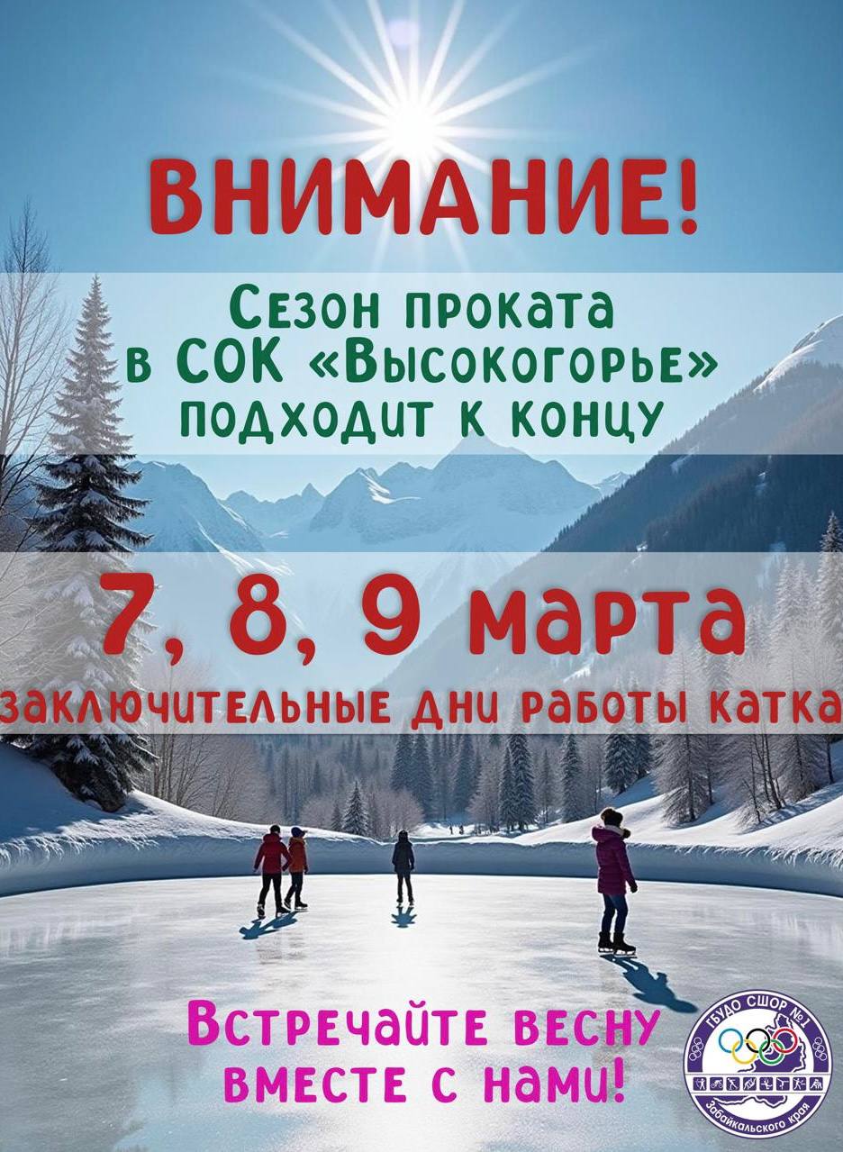 Время проводить зиму Каток в «Высокогорье» завершает сезон, но у вас еще есть шанс покататься с 7 по 9 марта! Приглашаем вас и вашу семью провести эти дни на свежем воздухе, весело и активно!Не упустите возможность! Читай нас: ТГ VK MAX