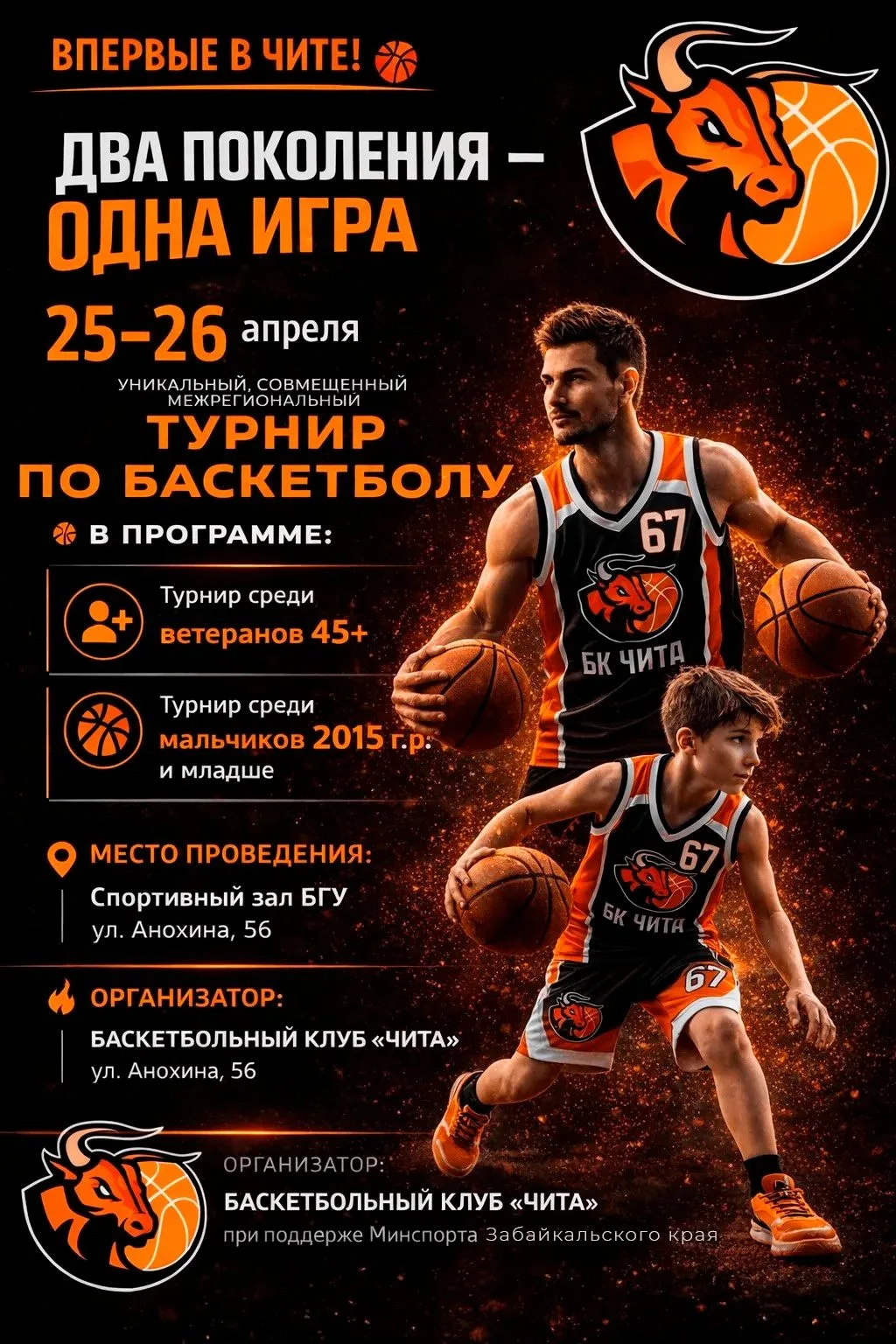 25–26 числа в Чите пройдут соревнования по баскетболу, где каждый наглядно может увидеть преемственность поколений!